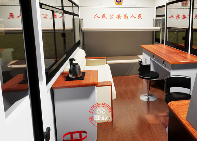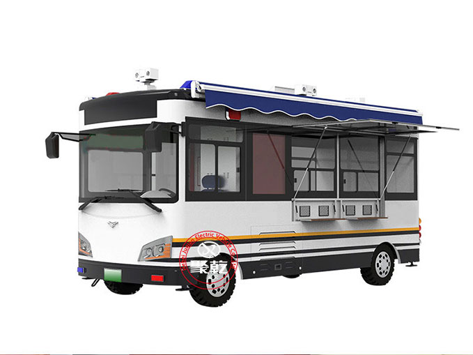 5.6米移動(dòng)巡邏車(電動(dòng))根據(jù)公安系統(tǒng)特點(diǎn)和移動(dòng)辦公的需求,開發(fā)設(shè)計(jì)的能乘坐一定工作人員的新型用車。配備宣傳系統(tǒng)、辦公系統(tǒng)、通信系統(tǒng)、監(jiān)控系統(tǒng)、圖傳系統(tǒng)、供電系統(tǒng)、照明系統(tǒng)及簡易生活設(shè)備,具有現(xiàn)場辦公指揮、應(yīng)急通信、圖像4G傳輸、現(xiàn)場照明、強(qiáng)聲廣播、惡劣環(huán)境執(zhí)勤等功能,能滿足移動(dòng)辦公、前移、檢查、卡口、維護(hù)治安等需要。