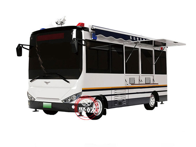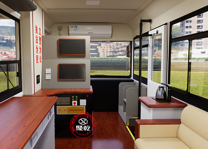 6米移動巡邏車(電動)根據(jù)特殊系統(tǒng)特點和移動辦公的需求,開發(fā)設(shè)計的能乘坐一定工作人員的新型辦公用車。配備宣傳系統(tǒng)、辦公系統(tǒng)、通信系統(tǒng)、監(jiān)控系統(tǒng)、圖傳系統(tǒng)、供電系統(tǒng)、照明系統(tǒng)及簡易生活設(shè)備,具有現(xiàn)場辦公指揮、應(yīng)急通信、圖像4G傳輸、現(xiàn)場照明、強(qiáng)聲廣播、惡劣環(huán)境執(zhí)勤等功能,能滿足移動辦公、前移、檢查、卡口、維護(hù)治安等需要。
